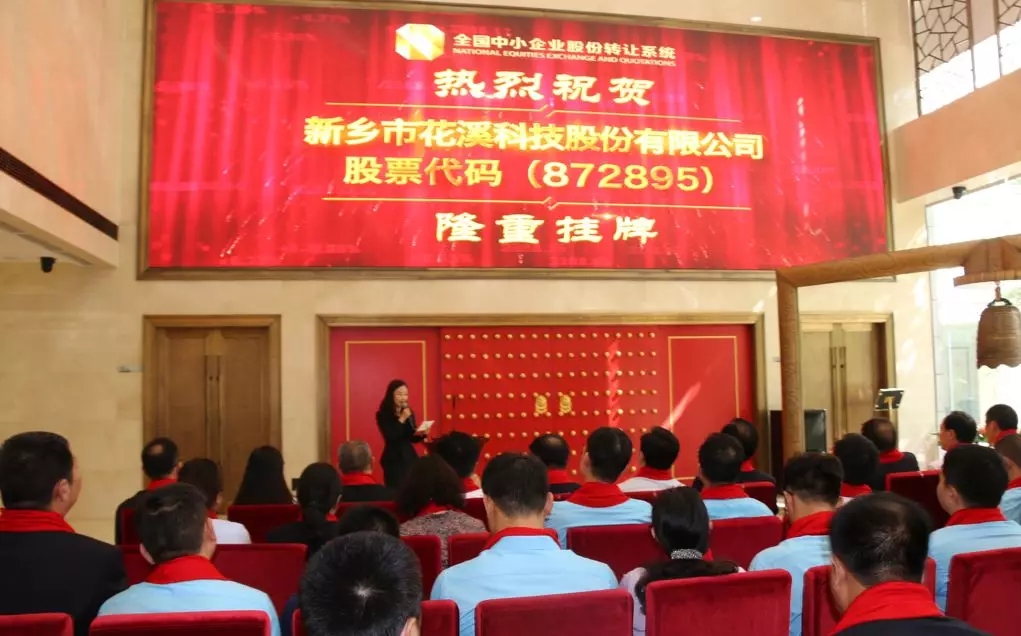 2018年8月31日上午9:30時,新鄉(xiāng)市花溪科技股份有限公司(簡稱:花溪科技,股票代碼:872895)新三板掛牌敲鐘儀式在北京全國中小企業(yè)股份轉(zhuǎn)讓系統(tǒng)成功舉行。中國農(nóng)機(jī)工業(yè)協(xié)會副秘書長寧學(xué)貴、獲嘉縣人民政府縣長劉軍偉、新鄉(xiāng)市金融局副局長張延明等特邀嘉賓及公司股東代表、員工代表、主辦券商、律師事務(wù)所、會計(jì)師事務(wù)所代表共同出席了掛牌儀式,共同見證花溪科技這一里程碑式的重要時刻。